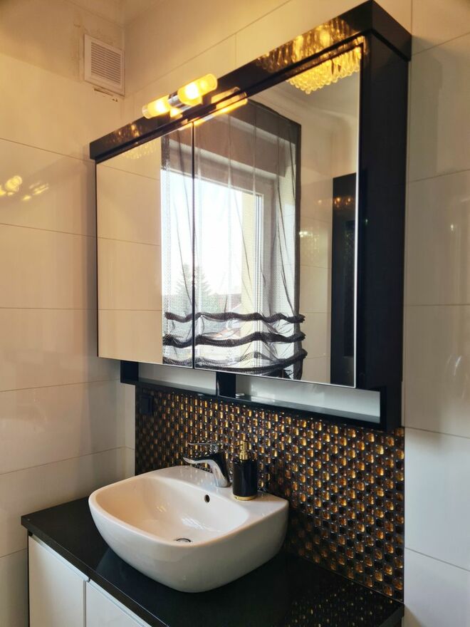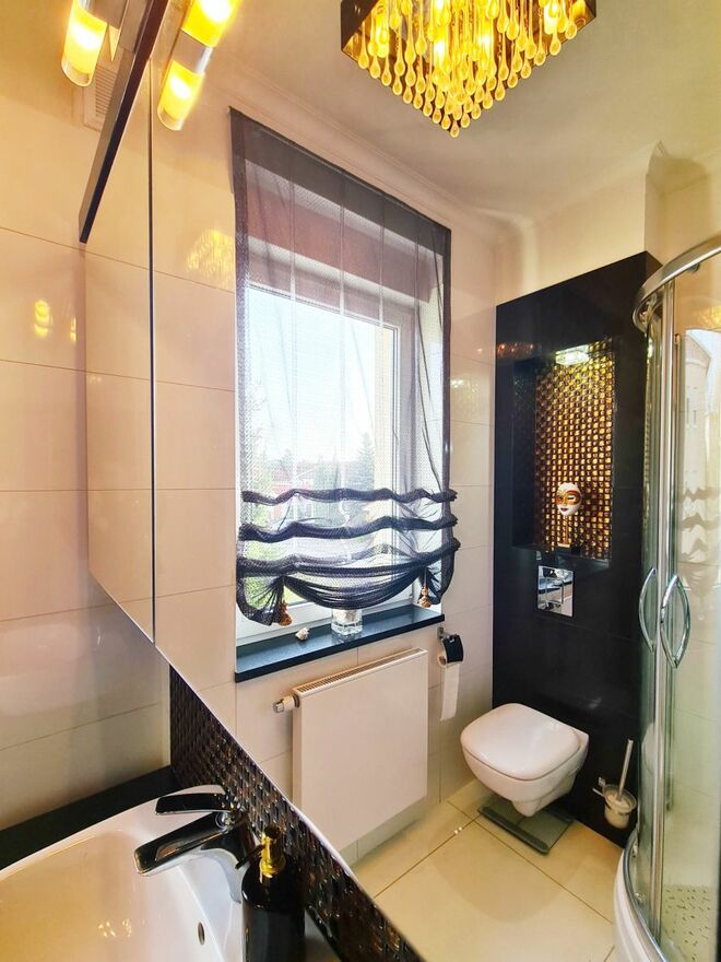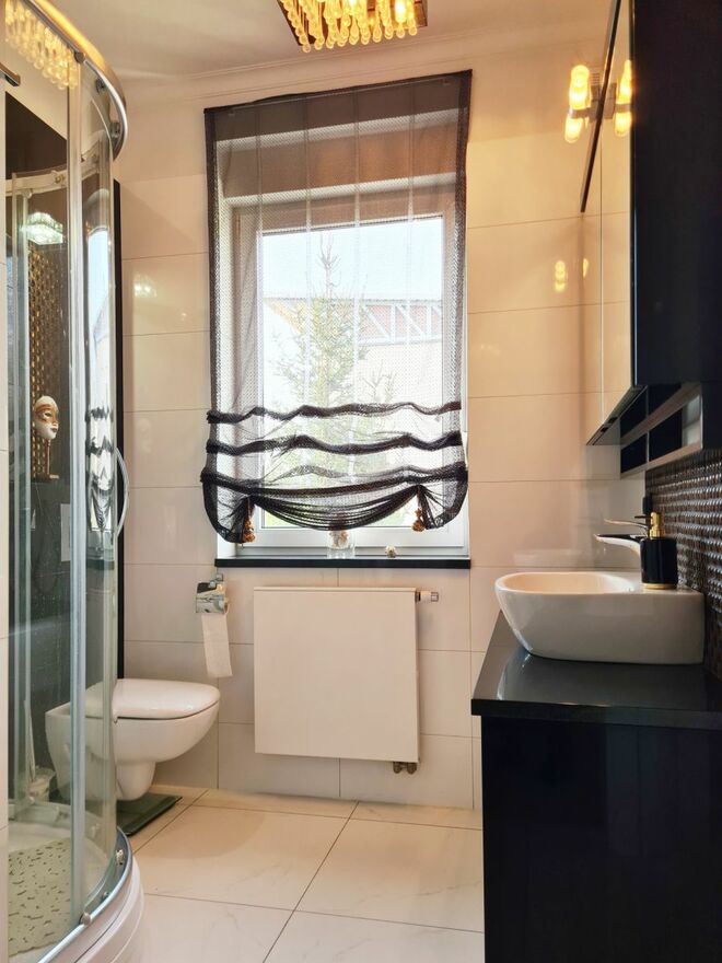 Łazienka z oknem i kabiną prysznicową